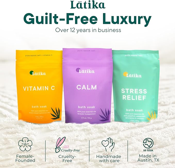 Latika Bath Soaks Set of 3 – Epson Salts for Soaking, Muscle Recovery & Skin Nourishment with Essential Oils | Relax, Rejuvenate & Destress | Lavender Mint, Vitamin C & Grapefruit