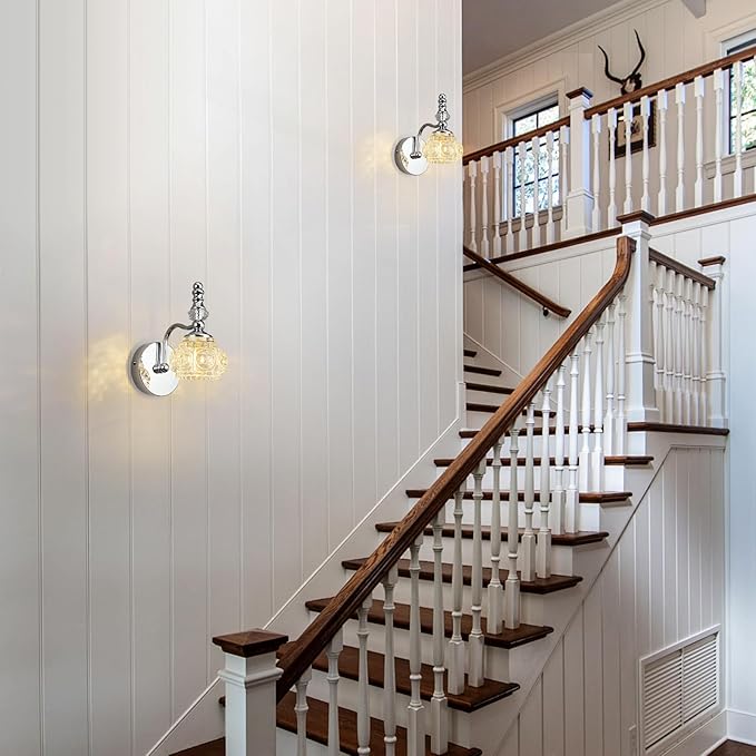 Modern Wall Sconces Set of Two Indoor Lamp Chrome Vintage Glass Light Bathroom Vanity Fixture Wall-Mounted Room Lighting