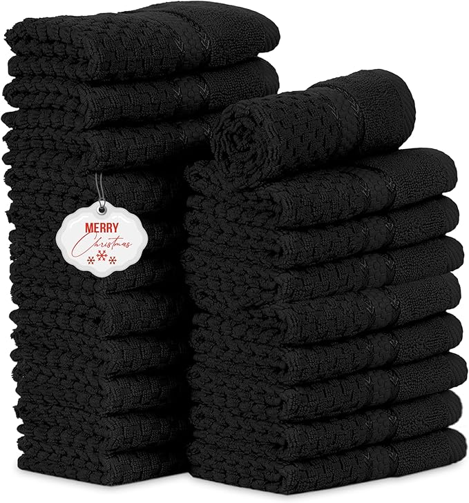 Ample Decor Washcloth Set of 20 Black 100% Cotton - Qucik Dry Popcorn Textured - Mulaayam Collection - 12 X 12 Inch