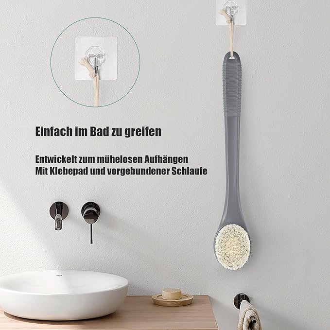 - Free Hanging Hook Included: We’ve included a handy hook that lets you hang your brush after use. This helps the back brush for shower dry quickly, keeping it clean and hygienic. It also keeps your bathroom neat and organized.