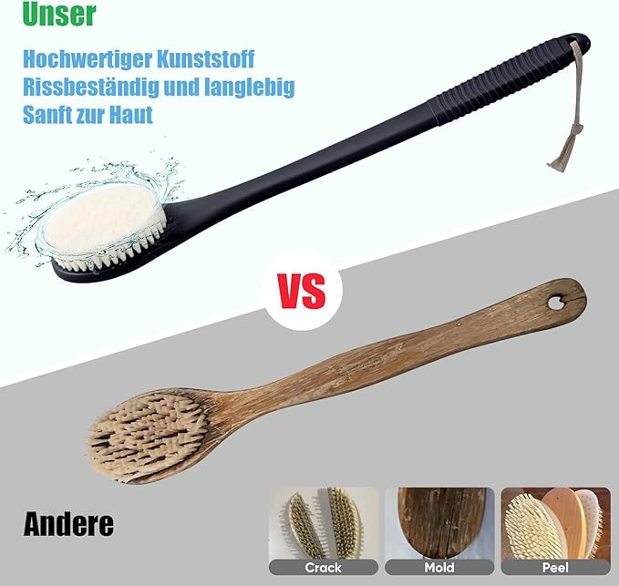 - Upgrade Moderate Bristle Firmness: The bristles on our back scrubber are just the right firmness,Too soft and they won’t effectively clean your skin, while too stiff can cause discomfort. We've chosen medium-hard bristles to ensure deep cleansing and a relaxing massage that’s gentle on your skin.