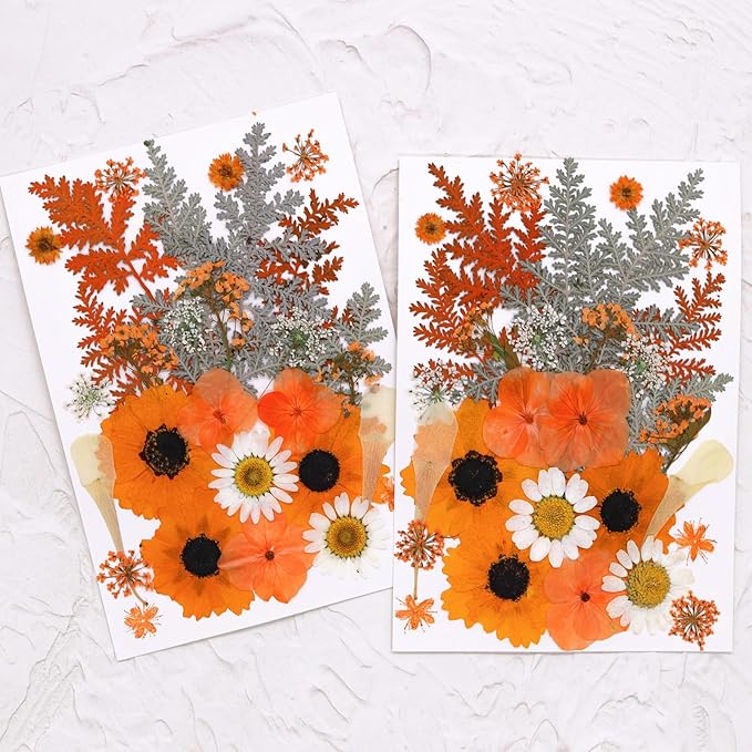30Pcs Dried Pressed Flowers for Resin DIY Art Crafts Natural Dry Leaves Ferns Daisy Epoxy Jewelry Real Flower Decor Cakes Bookmarks Phone Cases Candles Handmade Soap Orange