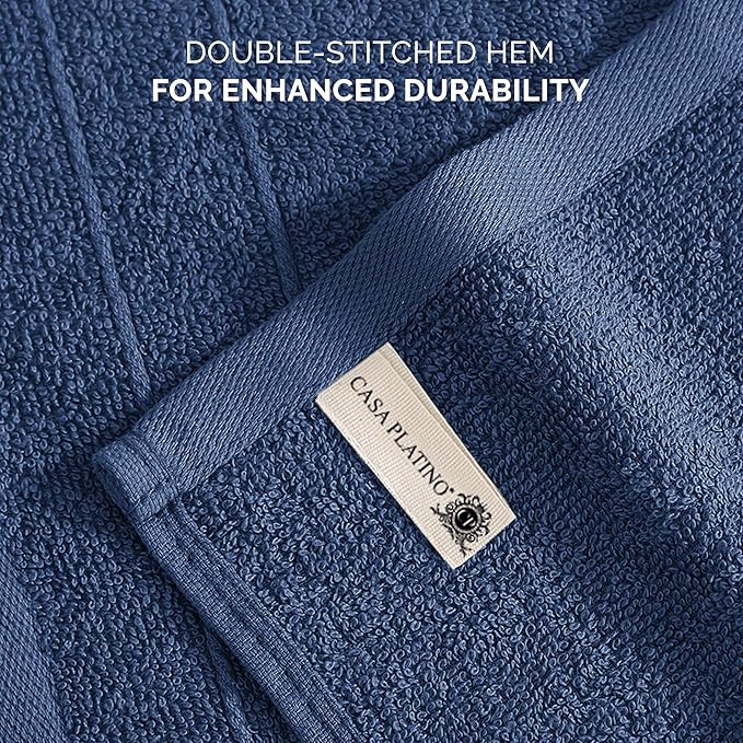 Casa Platino Washcloths Pack of 24 - Spa & Salon Quality - 100% Ring Spun Cotton Face Cloths - Soft & Ultra Absorbent Wash Cloth Set for Body, Beauty, Home, Gym - Fingertip Towels - 13"x13", Navy Blue