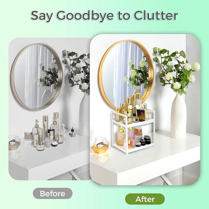 - EASY TO CLEAN - The counter storage rack can be easily wiped down with a damp cloth or simply rinsed with water, ensuring that your bathroom countertop shelf stays clean and tidy. Keeping your home organized has never been easier.