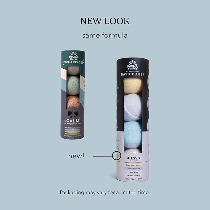 Pacha Soap Co. Bath Bomb Variety Set - Classic Scents, Handcrafted & Moisturizing Formula with Clean Ingredients, Paraben, Sulfate, Phthalate, SLS, and Dye-Free, Made in the USA, 2-Pack, 8 oz Each