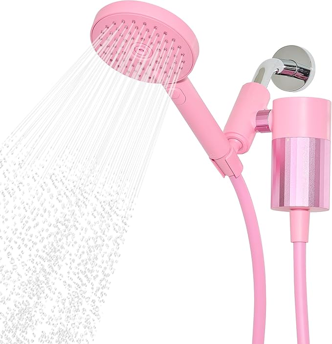 Sproos! - Handheld Showerhead with Filter Set, High Performance Filtration System for Healthier Hair and Skin, Extra Long 70 Inch Hose, 3 Customized Spray Functions, Pink