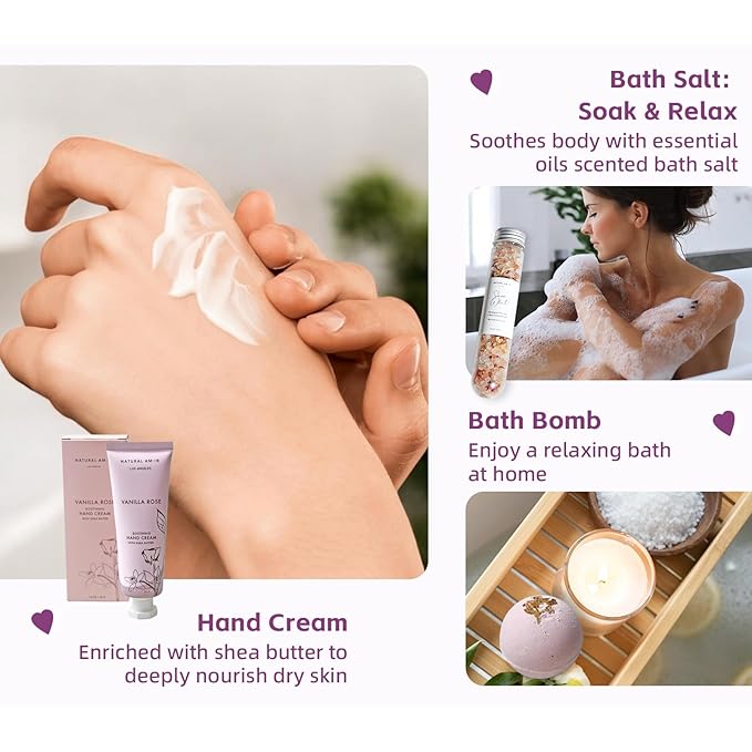 - Bath Gift Set for Women: Our bath & spa gift set is made from high quality natural ingredients, scented with essential oils help to moisturize and soothe skin. Create a relaxing bath experience at home after a busy day for her