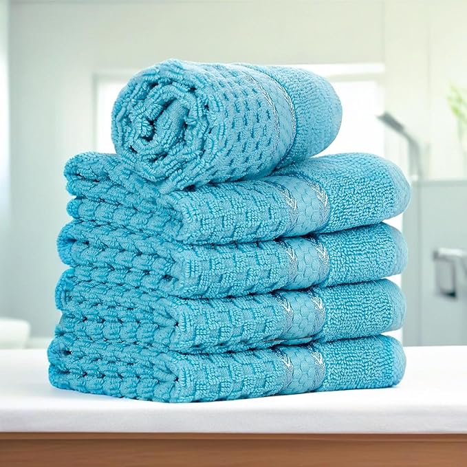 Ample Decor Sky Blue Wash Cloth Set of 5 100% Cotton - Quick Dry, Highly Absorbent, Popcorn Textured - Mulaayam Collection - 12 X 12 Inch