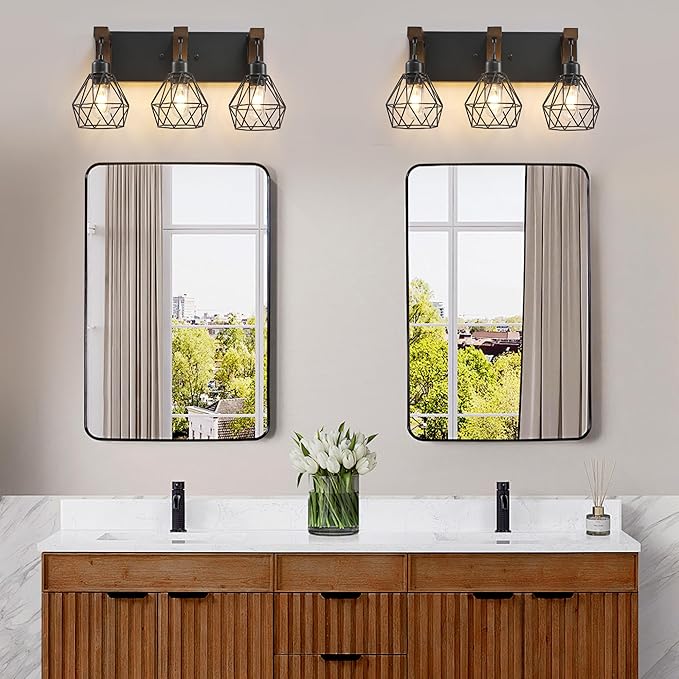 - 🌟【Enchanting & Rustic Vanity Light】- The farmhouse bathroom vanity light fixtures combine rustic charm with timeless appeal, creating a captivating lighting solution for your home. The wood accents and elegant metal lampshade add a touch of sophistication, transforming your space into a cozy retreat.