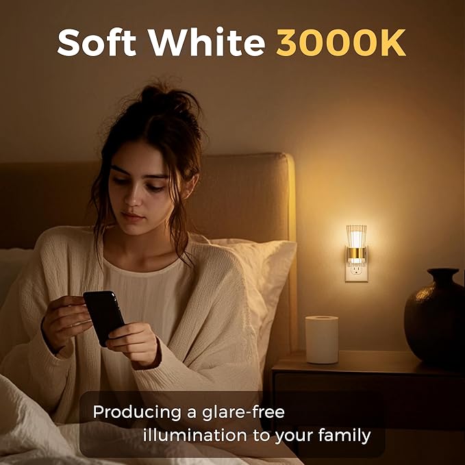 - Soothing Warm Night Light --Emits a gentle 3000K warm white glow that’s easy on the eyes, creating a calm ambiance for bedrooms, nurseries, or midnight bathroom visits. Safe for kids and adults alike.