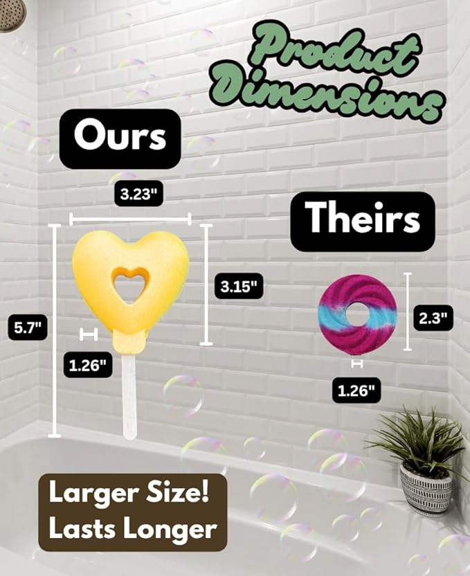 - Heart-Shaped & Lollipop Style – Adorable, colorful bath bombs designed for kids who love fun and fizzy surprises in the tub.
