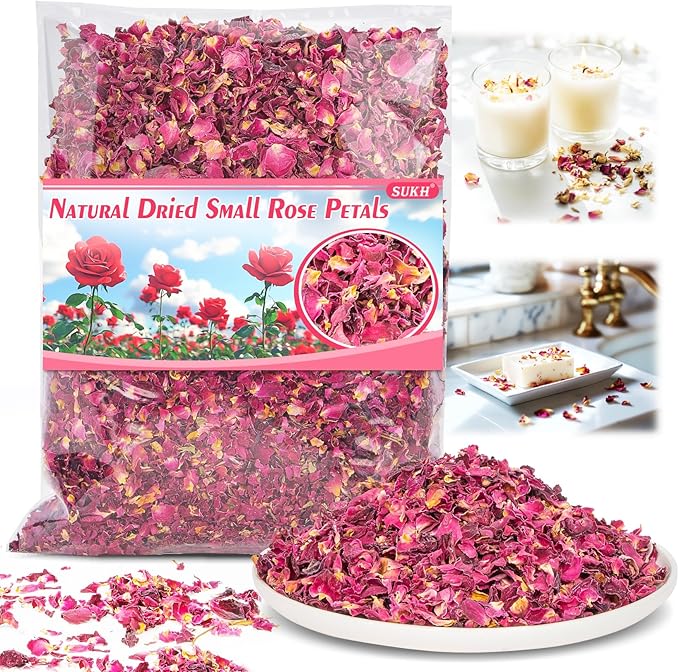 Sukh Dried Small Rose Petals - Natural Dry Red Rose Petals 3oz Organic Flowers and Herbs for DIY Spa Bath Salts,Soap Making,Candle,Resin Jewelry Crafts,Wedding Party Decoration and Confetti