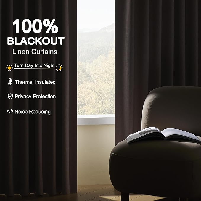 - Linen Blend & Care: These curtains are crafted from linen blend, no any harmful chemica, suitable for various styles: modern, farmhouse, boho, neutral, retro, etc. These long blackout drapes can be machine washable below 86℉ and avoid wringing, dry cleaning, bleaching