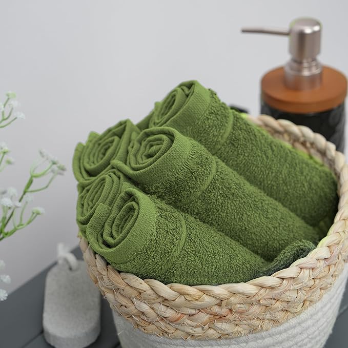 Tens Towels Pack of 60 Washcloths, 12 x 12 Inches, Lighter Weight, Quick to Dry, Super Soft & Absorbent, Gentle Face Towels, Hotel Quality, Perfect for Bathroom, Gym, Spa (Forest Green, 60 Pack)