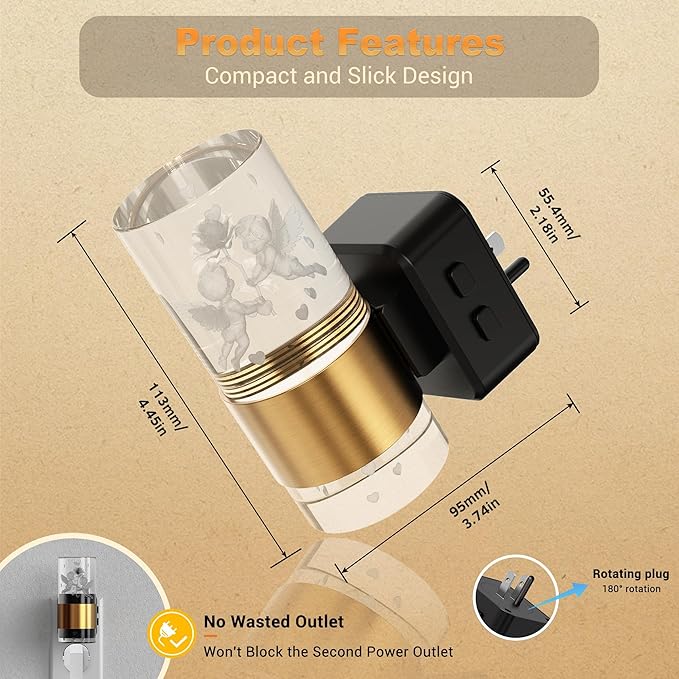 - 180° Rotating Plug & Stylish Design – Featuring a 180° rotating plug, this pretty night light adapts to various socket orientations, providing flexibility in installation. Its sleek and elegant design, accented with a gold ring and shatter-resistant acrylic, not only offers practicality but also adds a touch of sophistication to your home decor.