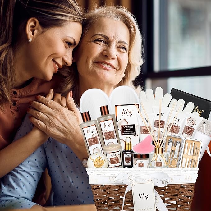 Coconut Vanilla Spa Gift Set for Women Christmas Gifts - Luxurious 28-Piece Body Care Collection, Moisturizing Bath & Body Basket Gift Set for Mother's Day, Birthday, Self Care Gift