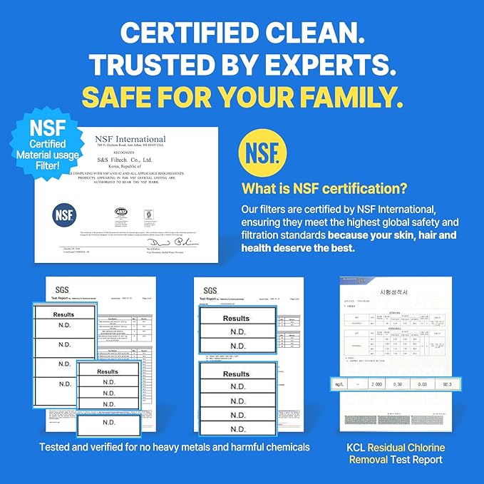- [Technology You Can See 3-Stage Composite Filter System] Backed by science, our advanced 3-Stage Carbon Composite Filter delivers powerful filtration performance: Sediment Layer: Helps clear visible rust and dirt. Compressed Activated Carbon Core, Filters fine particles for clearer water. Ideal for daily use for up to 1 month per filter. Lab-tested to meet international water safety standards. Pure science.