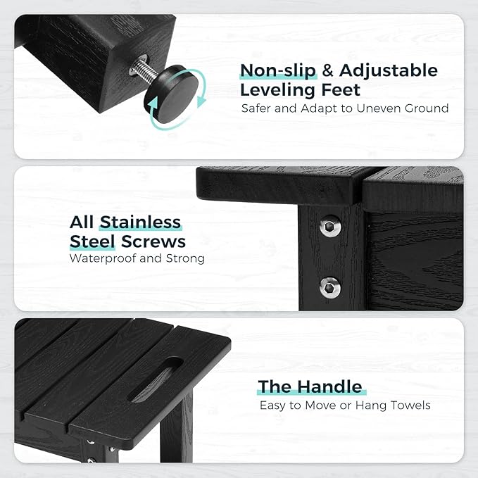- 【100% Waterproof】 The shower bench is made of HIPS (poly lumber), with 304 stainless screws, which is highly water proof, never rot and moldy. Easy to clean, just wipe it with a towel.