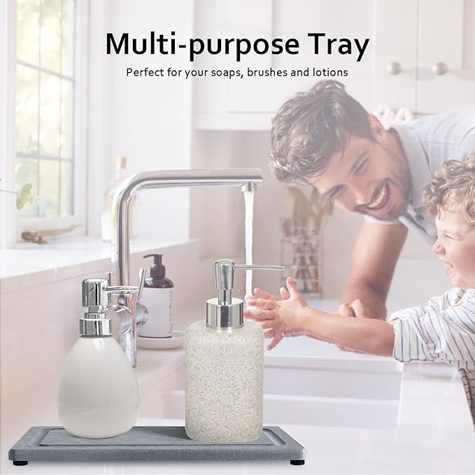 - 【Multifunctional】This versatile diatomite tray works perfectly for bathroom sinks and kitchen counters. Ideal as a drying base for soap, cups, hand soap bottles and cosmetics. Keeps surfaces dry and tidy for a cleaner, more organized space.