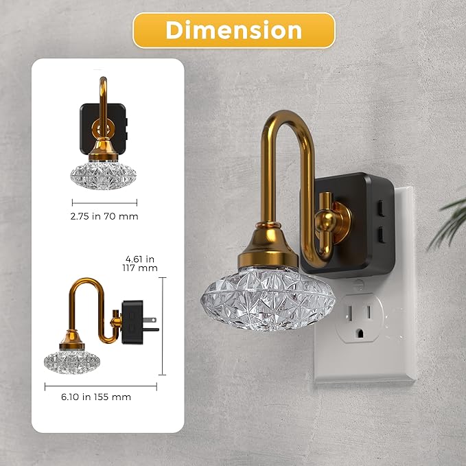 - User-Friendly Convenience:Includes a 180° rotatable 3-prong plug for flexible installation in various outlets. Adjust brightness across three levels (100%/50%/10%) to suit nighttime, sleep, or ambiance needs.