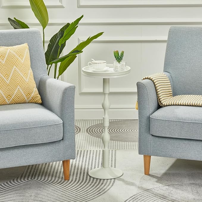 Small Round Drink Table,Pedestal Tables,Small Round Side Table for Narrow Spaces,End Table for Living Room, Bedroom, Bathroom,Balcony (White)