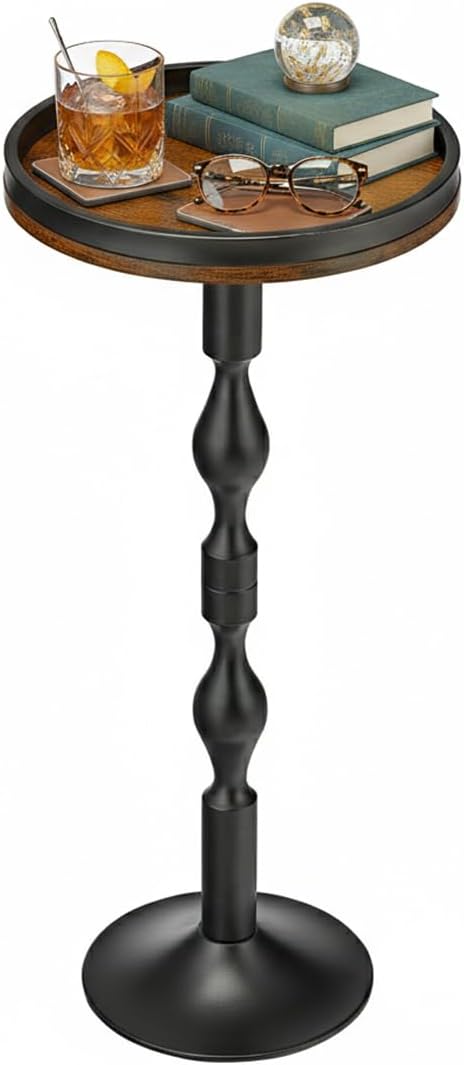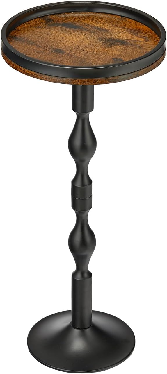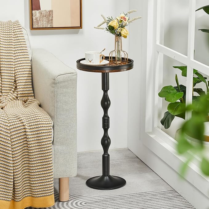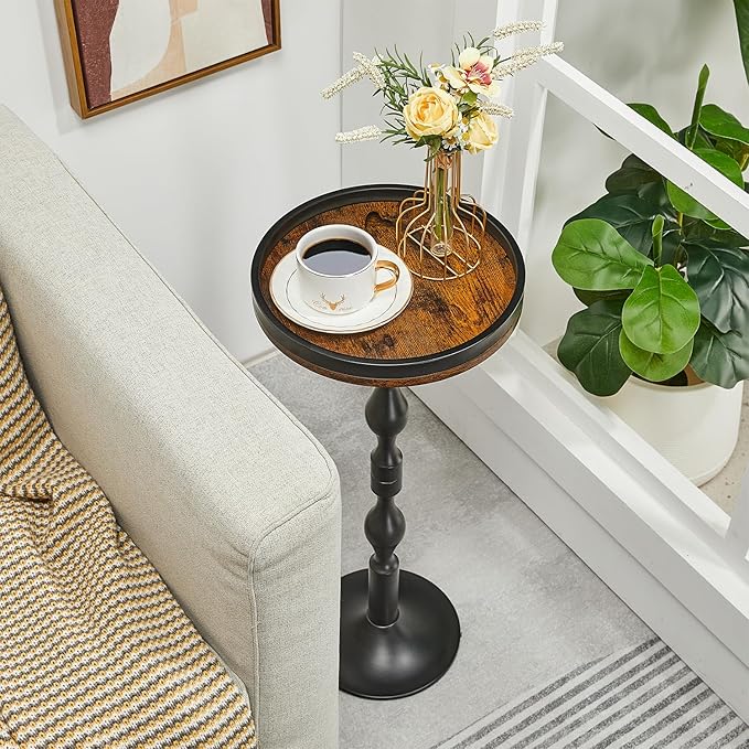 Small Round Drink Table,Pedestal Tables,Small Round Side Table for Narrow Spaces,End Table for Living Room, Bedroom, Bathroom,Balcony (Rustic Brown)