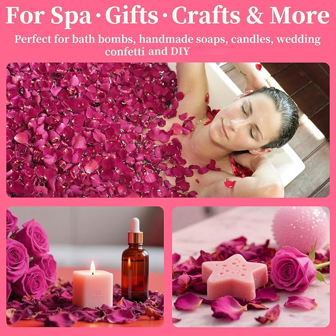 - Multiple Uses: Ideal for bath bombs, soap making, candles, DIY crafts, and romantic decorations. Whether you're planning a wedding, crafting gifts, or enhancing your self-care routine, these flowers deliver natural charm
