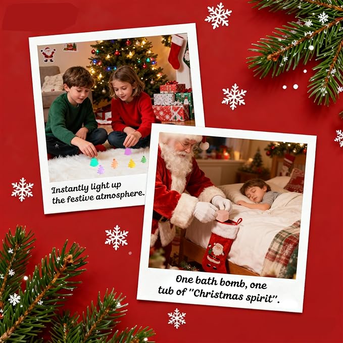 - Festive Fizz with Hidden Glow: Handcrafted with naturally-derived ingredients, these cube-shaped bath bombs dissolve into a whirl of festive colors and delicate bubbles. Every bomb includes a glow-in-the-dark Christmas tree toy—perfect for post-bath play or decorating, extending the holiday fun beyond the tub.