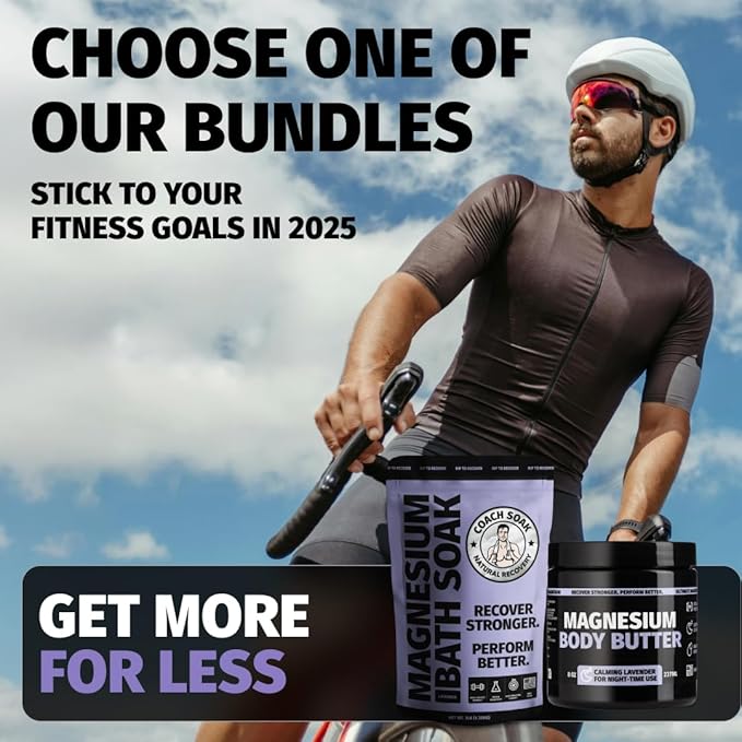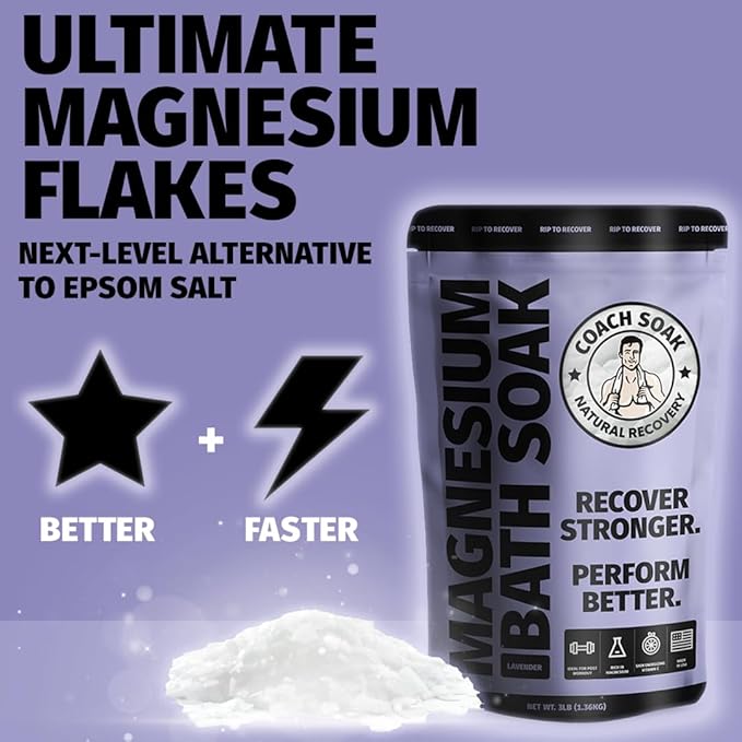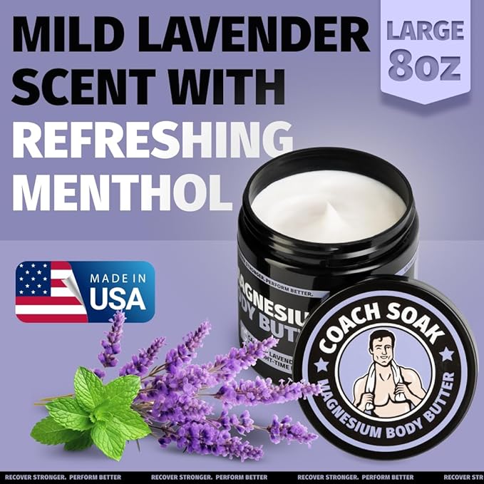 Coach Soak Recovery Bath Soak & Nighttime Magnesium Body Butter Bundle - Calming Lavender Scent - 3lb Bath Salts & 8oz Body Cream with Essential Oils, Magnesium & Shea Butter