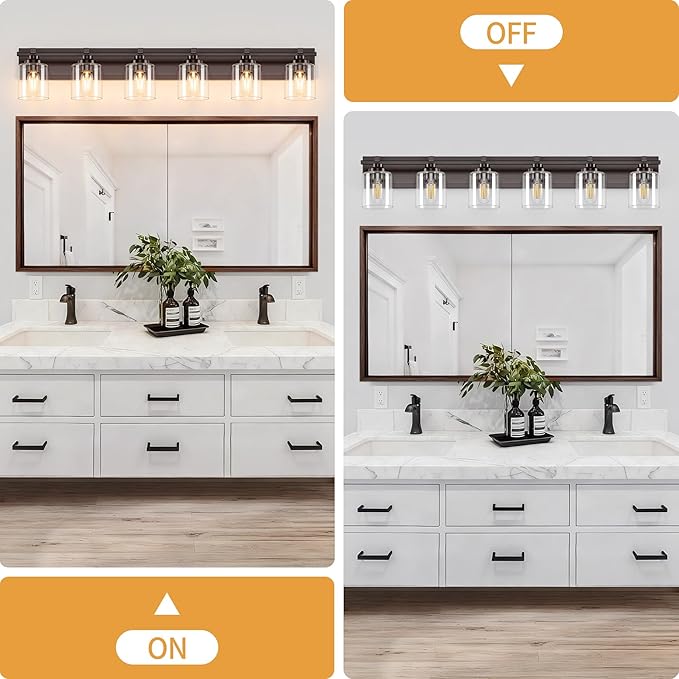 - 【Upgrade Unique Design】 The high quality metal base of oil rubbed bronze finish bathroom vanity lights, exudes a simple and pure beauty, reflecting a high quality texture. Combined with the clear glass shade hue, it shows a sophisticated modern style. They are also resistant to rust and corrosion, ensuring their longevity and reliability. Say goodbye to frequent replacements and enjoy the beauty of bathroom lighting fixtures for years to come.