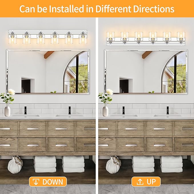 - 【Easy to Install】Vanity wall sconces are lights that are mounted to your wall. Vanity lights for bathroom can be installed in an upwards or downwards position. It's equipped with all the mounting hardware required for install. You can easily install it by referring to the user manual, only takes you a few minutes to finish.