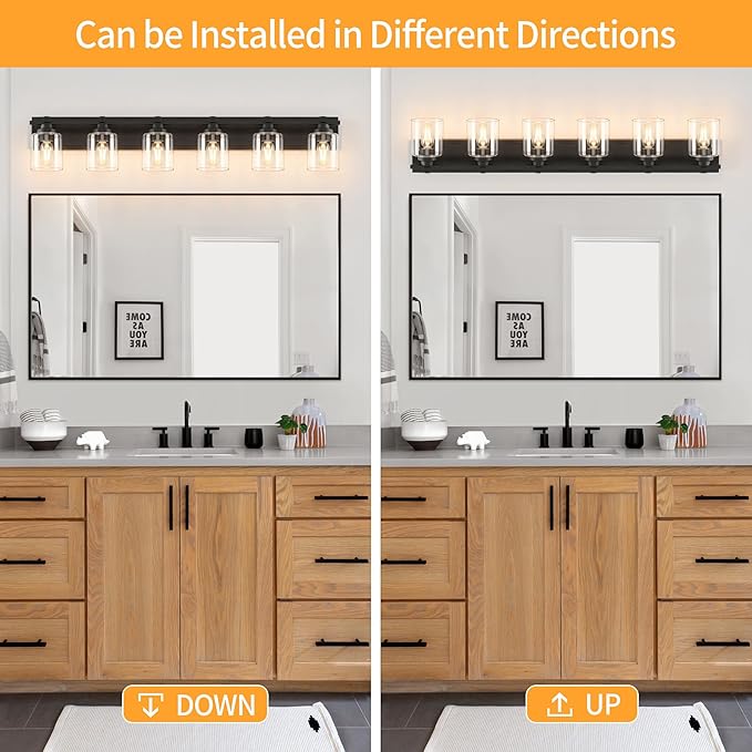 - 【Easy to Install】Vanity wall sconces are lights that are mounted to your wall. Vanity lights for bathroom can be installed in an upwards or downwards position. It's equipped with all the mounting hardware required for install. You can easily install it by referring to the user manual, only takes you a few minutes to finish.