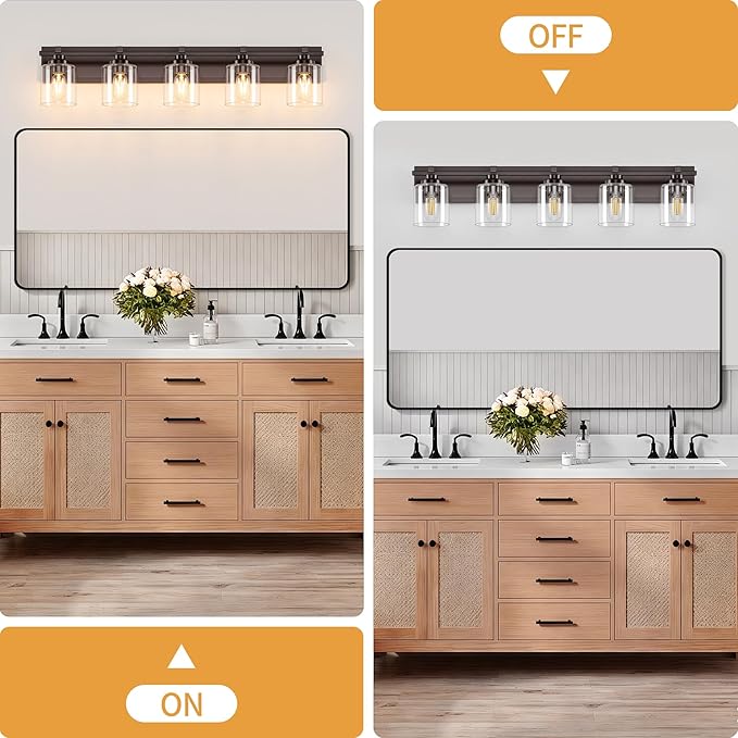 - 【Upgrade Unique Design】 The high quality metal base of oil rubbed bronze finish bathroom vanity lights, exudes a simple and pure beauty, reflecting a high quality texture. Combined with the clear glass shade hue, it shows a sophisticated modern style. They are also resistant to rust and corrosion, ensuring their longevity and reliability. Say goodbye to frequent replacements and enjoy the beauty of bathroom lighting fixtures for years to come.