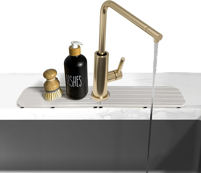 - 4.【Elegant & Functional Design】: The spherical grooves, featuring symmetrical straight lines, enhances anti-slip and drainage performance and also provides visual enjoyment. The anti-slip pads can elevate the faucet pad, increasing air flow to accelerate moisture evaporation.