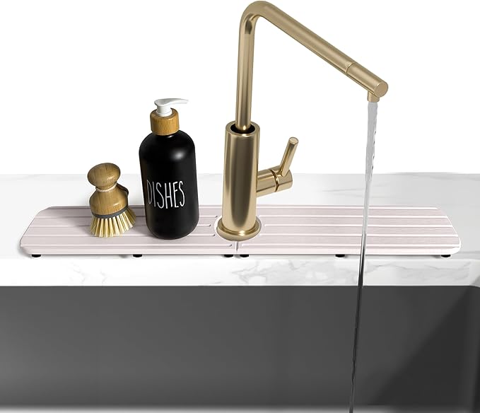 - 2.【Absorbent & Fast-Dry】: Made of natural diatomaceous earth, this stone mat for kitchen sink absorb splashed water quickly and dries in minutes. Keeps your sink area dry and clean.