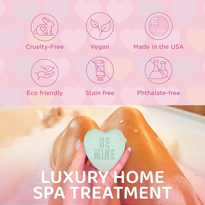 - [Luxurious Valentines Bath Bombs for Women and Girls] Turn bath time into a mini spa escape with our heart-shaped bath bombs. Each one fizzes with vibrant colors and soothing scents for total relaxation and sweet fun.