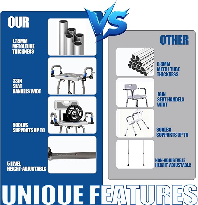 Shower Chair for Seniors Elderly Handicap Disabled Or Bariatric Adults Heavy Duty 500 Lbs Bench Seat for Inside Shower Stall and Bathroom Bath Tub with Arms and Back Adjustable Stool Chairs