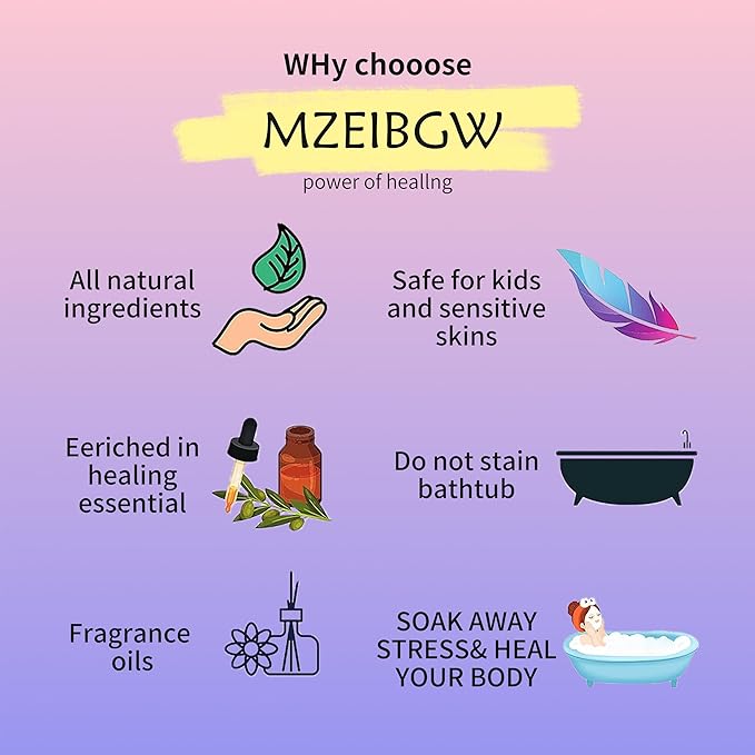 - Safe & Natural Ingredients: This soothing bath product is simply a fatigue buster! It is rich in baking soda, citric acid, sea salt, natural essential oils, natural plant pigments, shea butter, etc, after using it, it won't dirty your skin or the bathtub