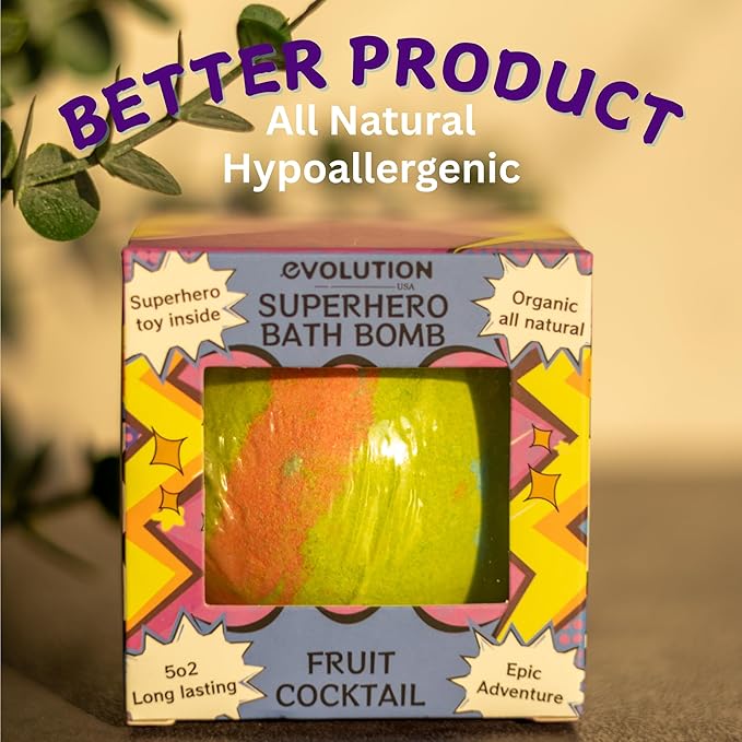 - Superhero Theme Kid Bath Bomb with Surprise: Exciting bath bomb with superhero toy. Non toxic kids bath bomb designed to be safe & fun. Our superhero bath bomb for boys with toys hidden inside make the best superhero gift. Kids love discovering an epic super hero character bath toy is found in each fizzy bathbomb.