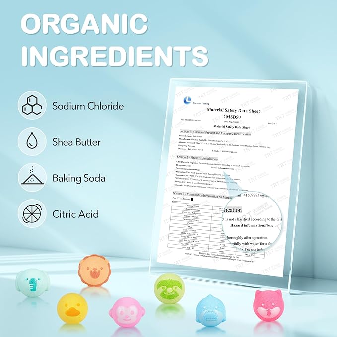 - Unique Bath Bombs: 14 Fantasy coloured animal-shaped bath bombs. Once dropped in water, the bath bomb will fizz with bubbles, provide an attractive experience.