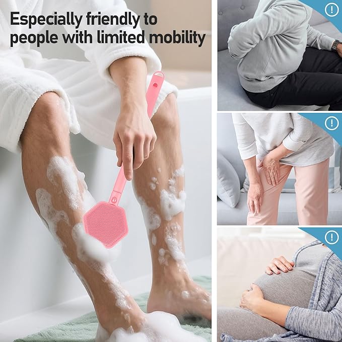 - 【Extra-Long handle, Cover More】Extendable Long handle allows you to cover hard-to-reach spots such as back,lower leg and feet,no need to bend to wash these areas anymore,Perfect for the elderly, disabled, Pregnant Women, or anyone with limited arm movement.Overall length is 21 inches, Lengthen or shorten at will.“Lifesaver” for bath and shower.