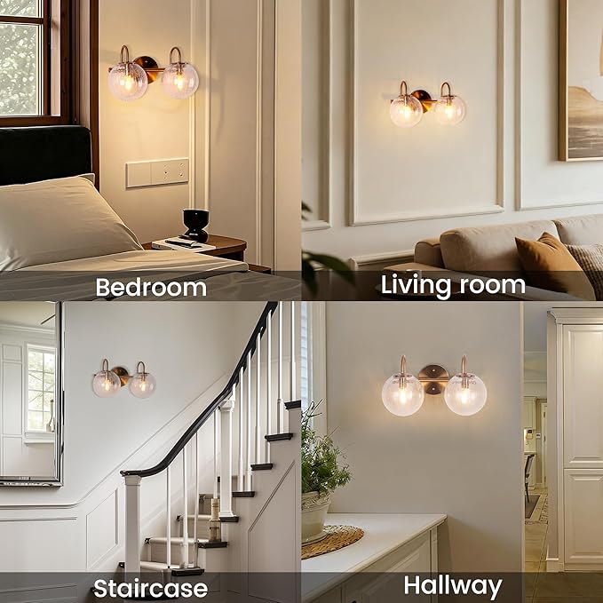 - Elegant Bathroom Decor: revoici 3-light vanity lights for mirror feature a combination of thick hammered cracked glass globe shades and a durability and sturdiness brushed gold metal long base back plate, creating a perfect fusion of timeless elegance and modern minimalism. These bathroom lights over mirror are the ultimate choice for your bathroom lighting needs