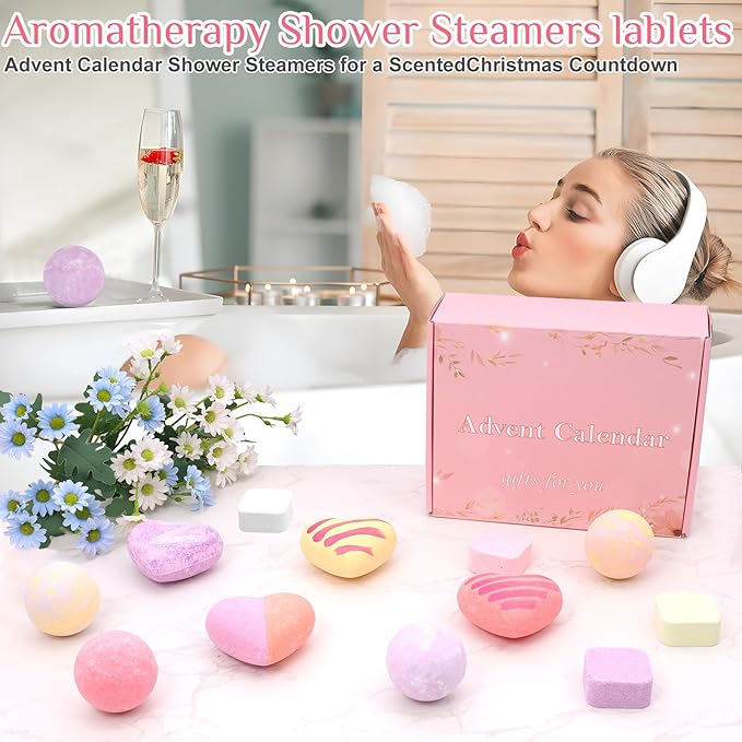 2025 Advent Calendar for Women, 12 Pcs Bath Salts & Shower Steamers Aromatherapy Gift Set, Christmas Countdown Box with Soothing Scents for Relaxation & Stress Relief (12 Pcs)