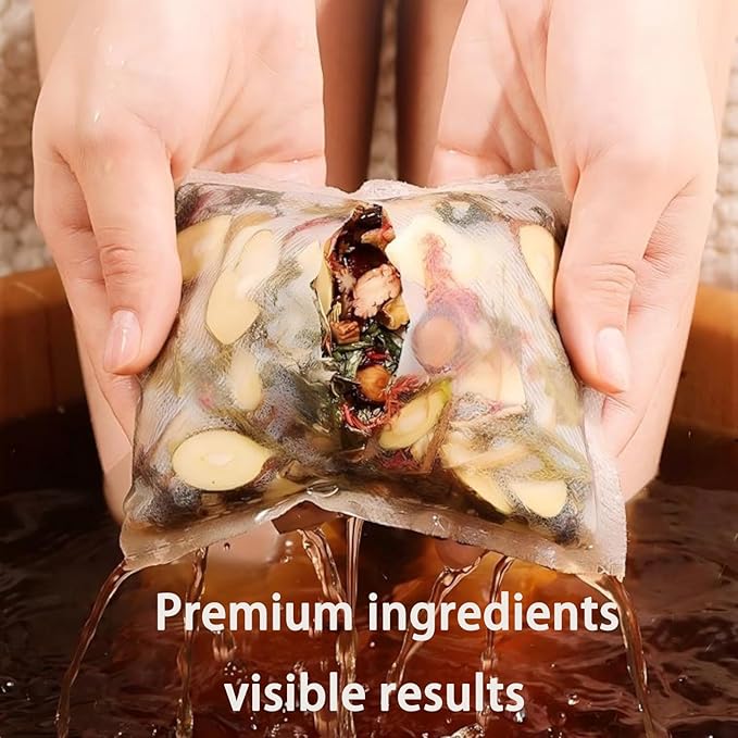 - 【Usage Guidance】Submerge the foot soak pouch in boiling water (100°C) for 10-15 minutes. Adjust the water temperature to a comfortable level (45°C). Soak your feet for 15-30 minutes. For best results, use regularly.