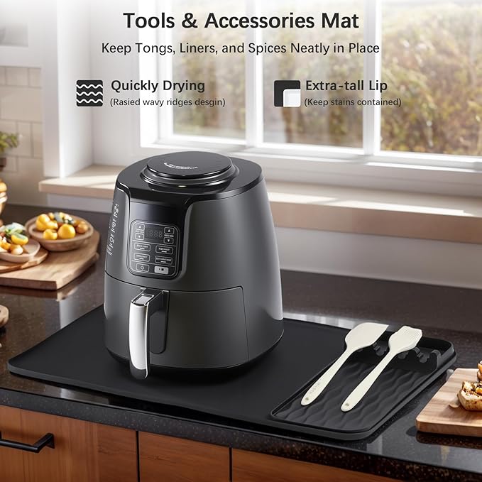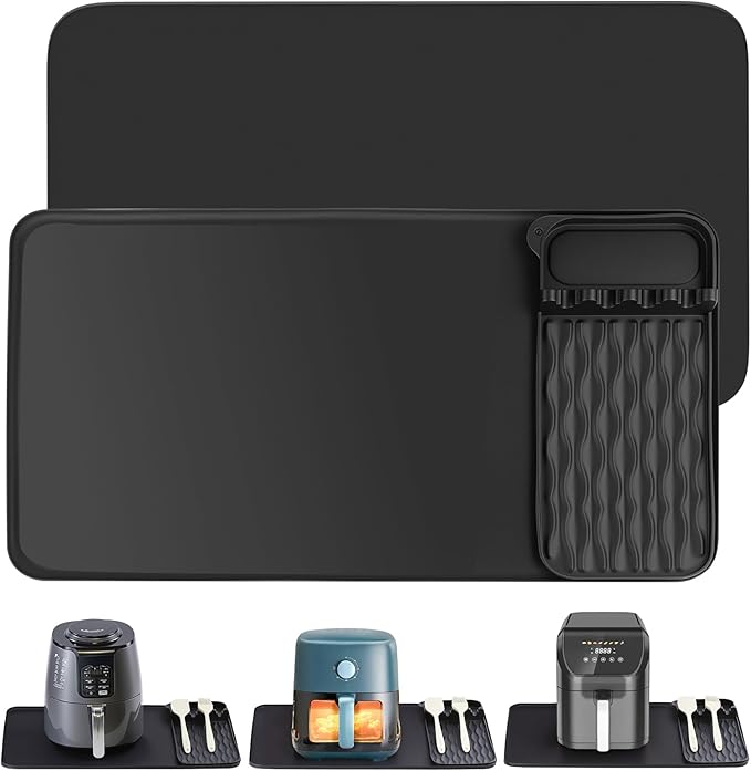 - Beyond an air fryer mat, it's your ultimate kitchen partner. The main heat proof mat for kitchen counter protects under various appliances. Use the small mat as a utensil rest. Its sleek design fits any décor. Universally compatible with Ninja, Cosori, and most air fryers.