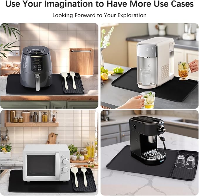 - The textured top on these appliance mats for countertop lock mats and appliances firmly in place. This prevents slips, keeping your air fryer or coffee maker stable on busy counter tops.