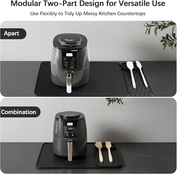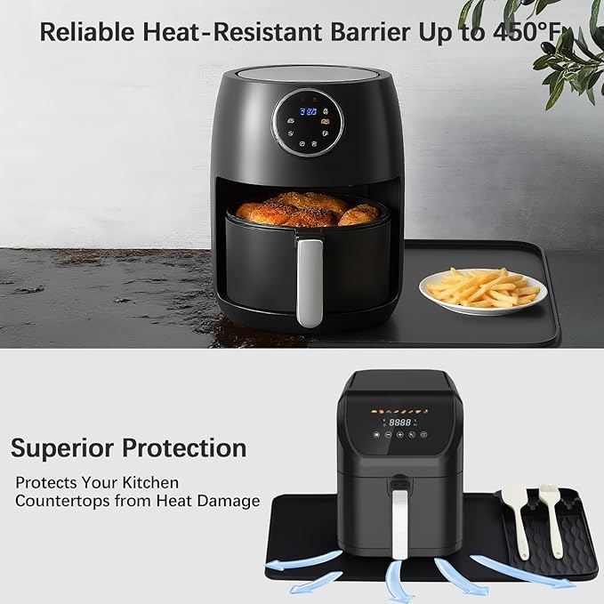 - This isn't just a single heat resistant mat. Our set features a large 25.60x15.16" smaller mat for air fryer counter protection and other appliances. Plus, a detachable smaller heat resistant pad for utensils. Use them together or separately. It’s the versatile countertop heat protector your kitchen deserves.