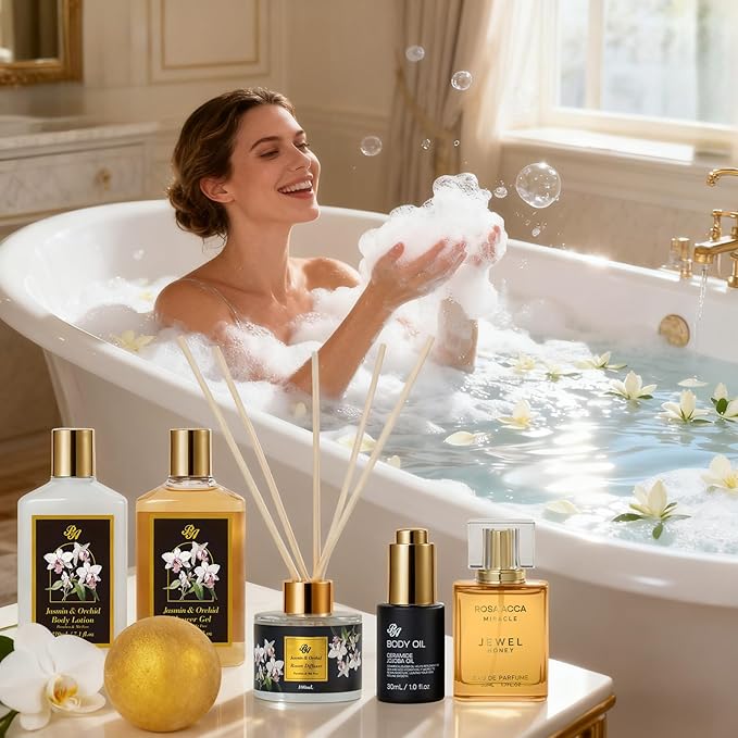 35 Pcs Christmas Gifts for Women, Orchid Spa Gift Basket Set, Self-Care Relaxation Kit, Face Skin Care Set, Bath & Body Care Set, Bath Bomb, Birthday, Valentines, Mother's Day, Wife, Mom, Anniversary