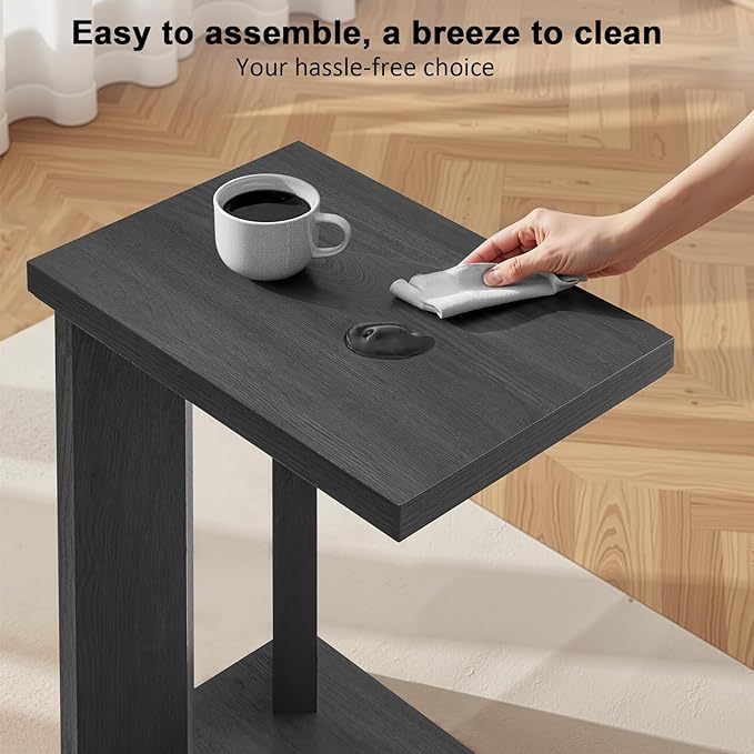 - AMPLE STORAGE SPACE: While this C shaped end table for couch doesn’t feature drawers, it offers a practical two-tier platform—ideal for keeping table decor, remote controls, or bedtime essentials organized. The open design ensures your items stay within reach, whether used as a bedside table or living room side table.