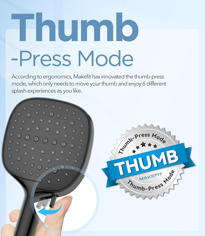 - 【Effortless Thumb Control 】Transform your shower with a single thumb press. This innovative design of filtered handheld shower head makes switching modes effortless and intuitive. Perfect for when you're washing your hair or caring for a child. Customize your routine from a powerful wake-up call to a relaxing wind-down.